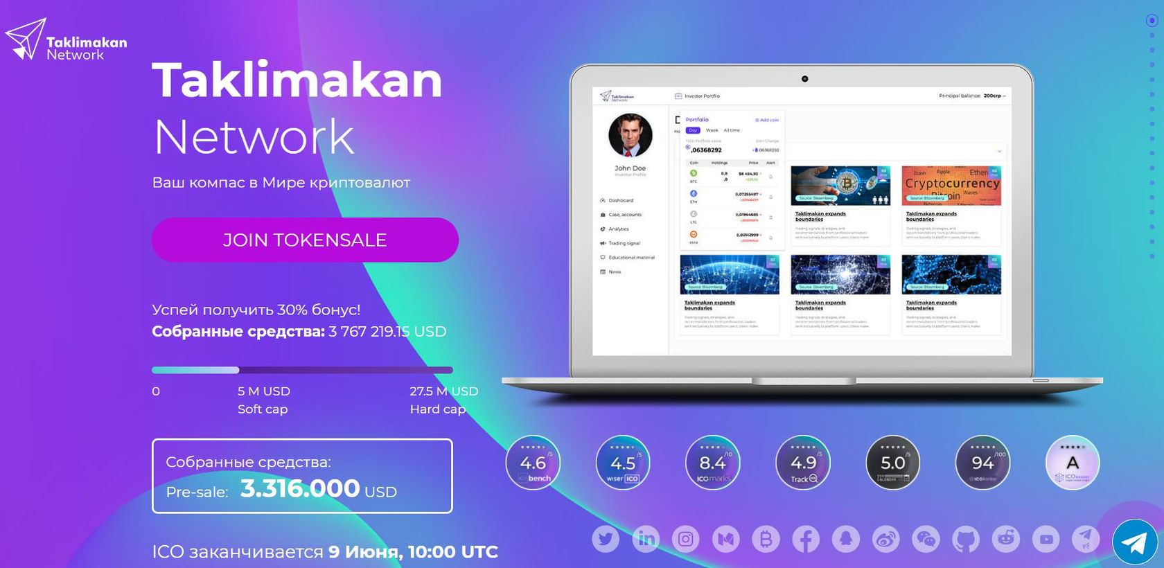 The business platform Taklimakan Network is created for analysts, investors of crypto-currencies, traders. Its work is carried out using Blockchain technology based on integrated Fintech solutions.